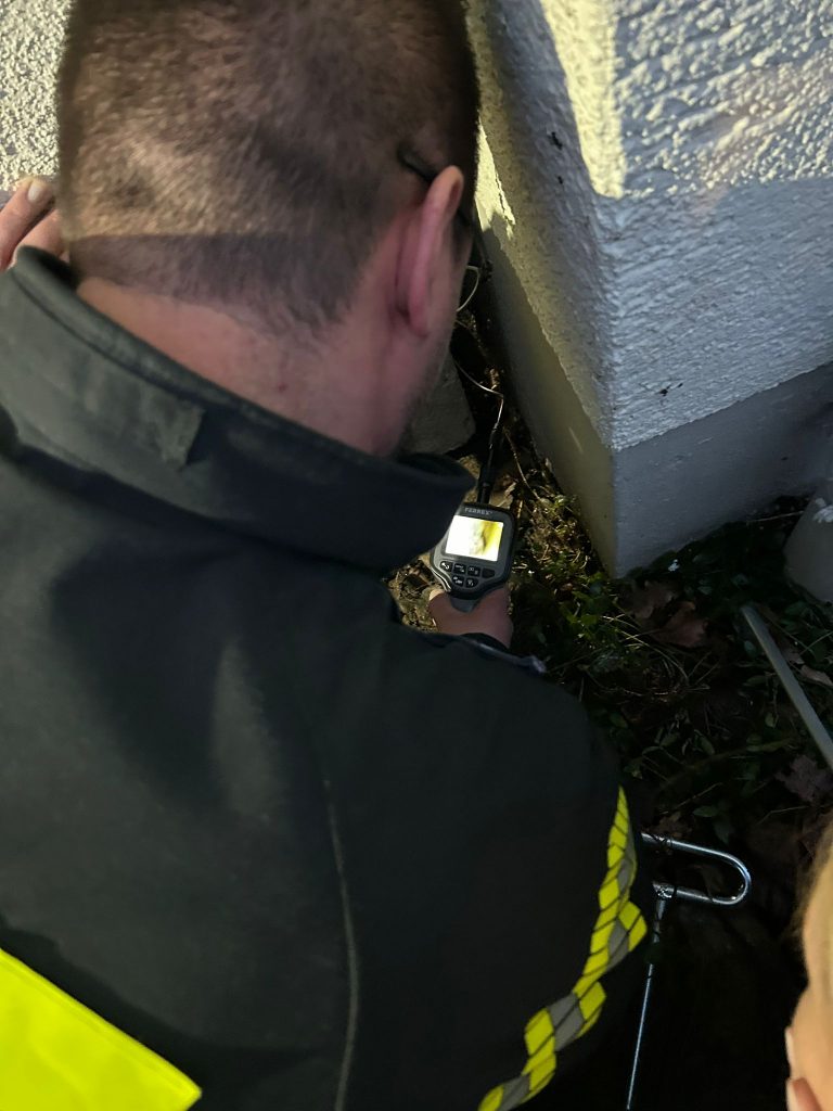 Im weiteren Verlauf konnte die Katze mithilfe einer Rohrkamera lokalisiert werden. Dabei stellte sich heraus, dass das Tier weder eingeklemmt noch verletzt war.