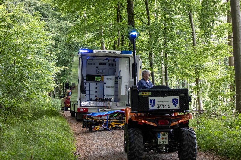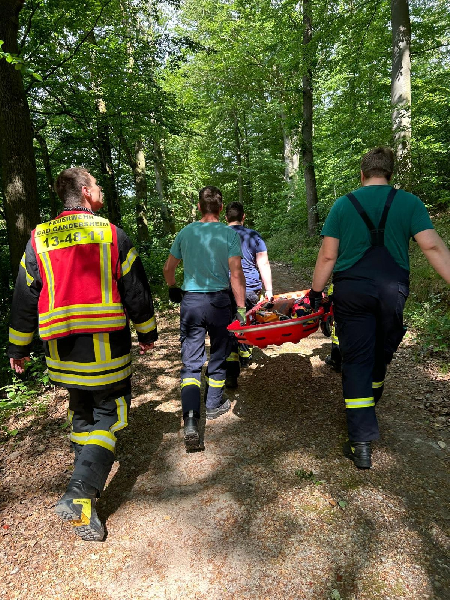 Um 10:35 Uhr wurde die Schwerpunktfeuerwehr Bad Gandersheim, zu einer nicht alltäglichen Tragehilfe alarmiert. Laut der Meldung der Leitstelle, sollte ein Wanderer im Wald, in der Nähe des LAGA-Geländes gestürzt sein & sich dabei eine Beinverletzung zugezogen haben. Da nicht klar war, wo die Person gestürzt sei, wurde mithilfe der Leitstelle und der App "What3Words", die Koordinaten an die Einsatzkräfte übermittelt. Während wir auf dem Weg, zu den Koordinaten waren, entdeckte, ein aufmerksamer Passant, den verletzten Wanderer. Der Rettungsdienst & Einsatzkräfte der Feuerwehr Bad Gandersheim, behandelten die Person an, befreiten diese aus ihrer misslichen Lage & brachten diese anschließend in den Rettungswagen. Die DRK Bereitschaft Altes Amt, mit der Geländerettungskomponente, die zwischenzeitlich nachalarmiert wurde, konnte die Einsatzfahrt abbrechen. Nach guten zwei Stunden war der Einsatz beendet.