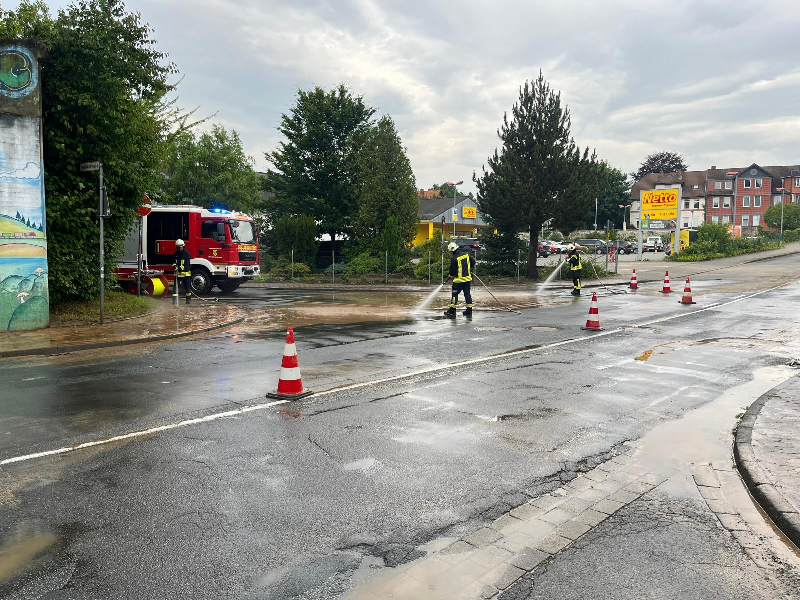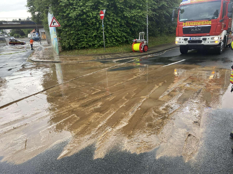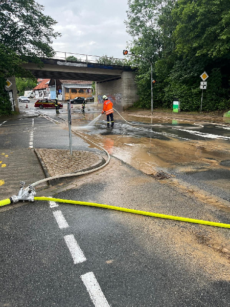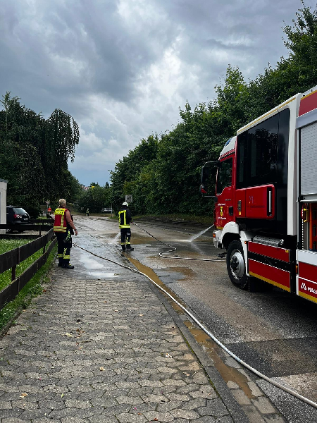 Um 15:55 Uhr, wurden wir zur Unterstützung des Bauhofs, in die Marienstraße alarmiert. Nach den heftigen Regenfällen wurde die Straße durch den Schlamm verunreinigt. Mithilfe von mehreren Hohlstrahlrohren und Schläuchen wurde die Straße durch uns von dem Schlamm befreit. Nach ca. zwei Stunden war der Einsatz beendet.