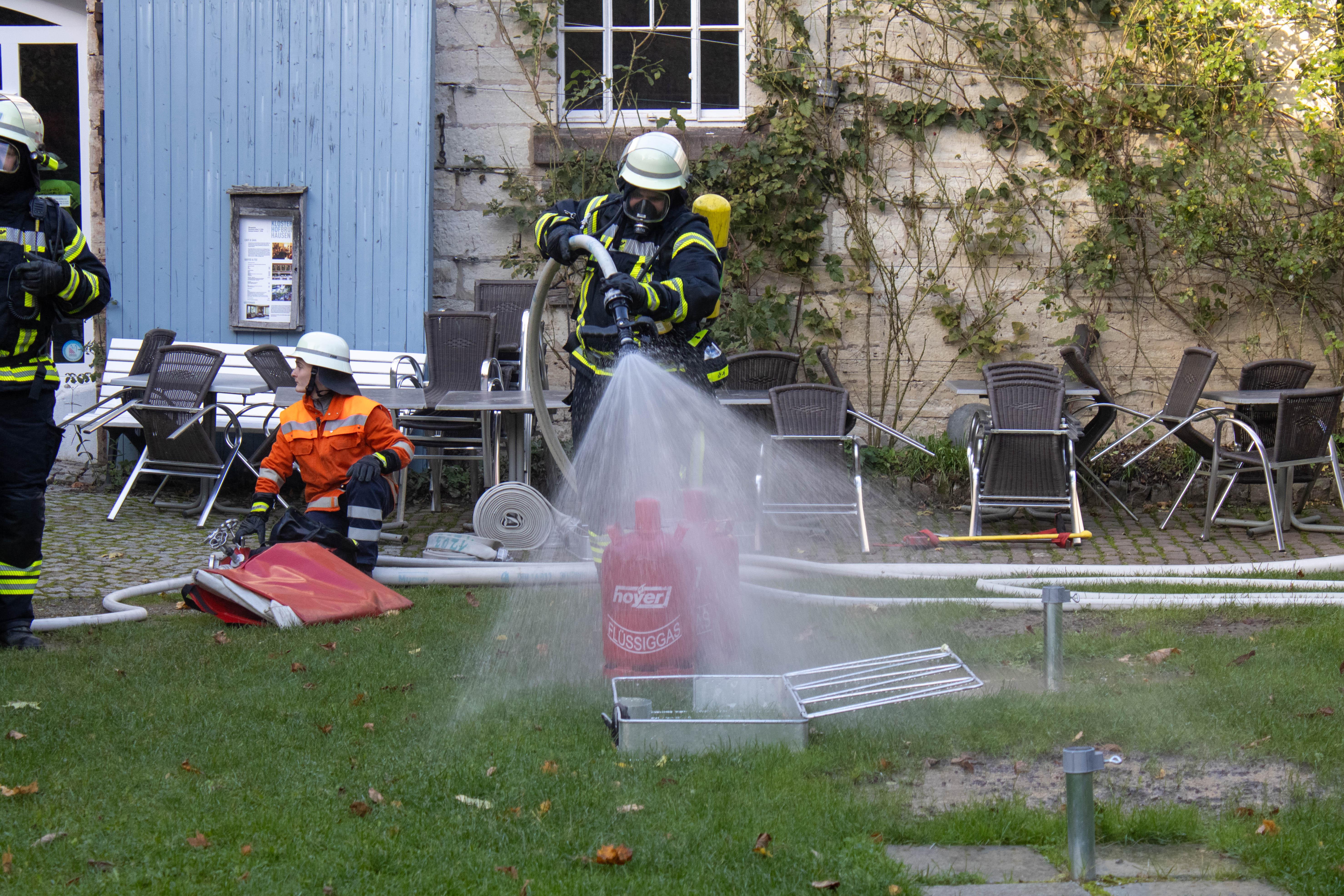Die Schwerpunktfeuerwehr Bad Gandersheim, wurde gegen 16:21 Uhr, zu einem Zimmerbrand nach Brunshausen alarmiert. Bereits auf Anfahrt war eine starke Rauchenentwicklung sichtbar, sodass durch den Diensthabenen Brandmeister vom Dienst, die Ortsfeuerwehren Altgandersheim und Clus nachalarmiert wurden. An der Einsatzstelle eingetroffen, ging ein Trupp unter Atemschutz, zur Brandbekämpfung vor. Ein weiterer Trupp, kontrollierte mithilfe der Wärmebildkamera zwei Wohnungen nach eventuellen Personen. Im weiteren Verlauf unterstütze ein dritter Trupp, bei den Nachlöscharbeiten. Parallel dazu, wurden zwei Hochleistungslüfter in Stellung gebracht, um den Brandraum bzw. die Wohnungen von dem Rauch zu befreien. Die Ortsfeuerwehren Wrescherode und Seboldshausen wurden mit weiteren Atemschutzgeräteträgern nachalarmiert. Diese mussten jedoch nicht mehr eingesetzt werden. Die Einsatzstellenhygiene der eingesetzten Atemschutztrupps übernahm die darauf spezialisierte Ortsfeuerwehr Dankelsheim. Nach ca. vier Stunden war der Einsatz beendet.