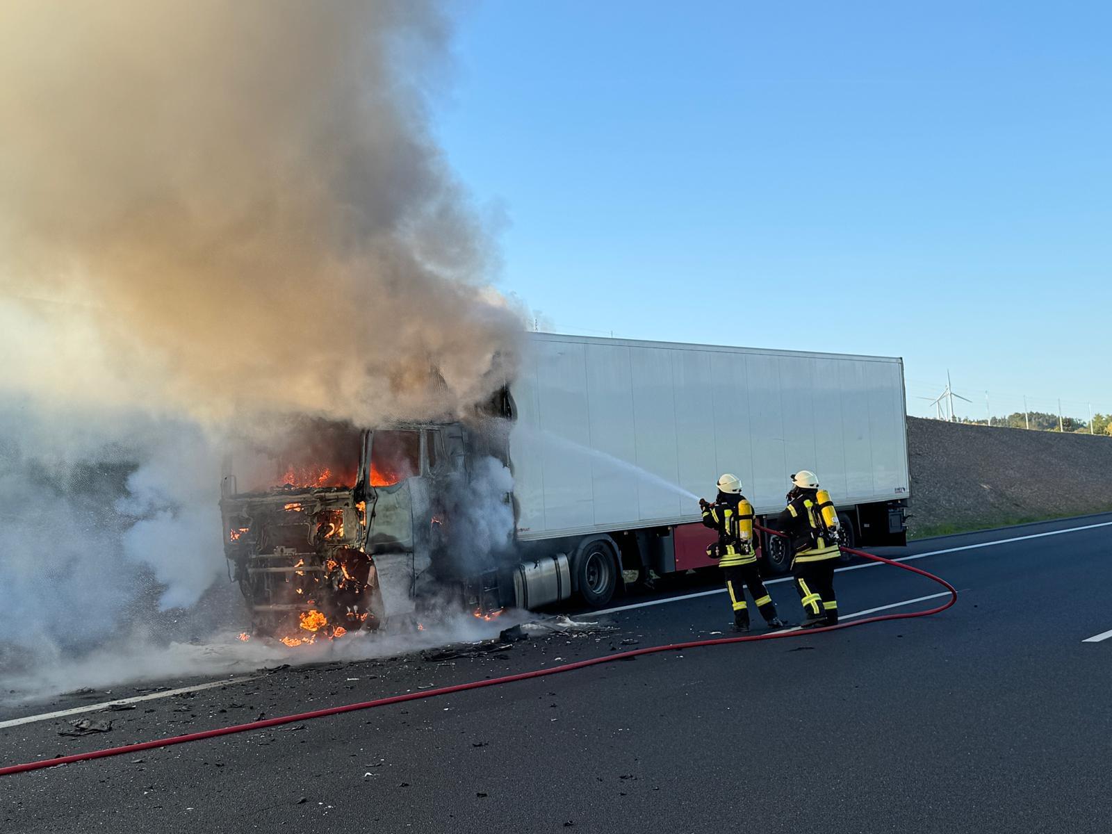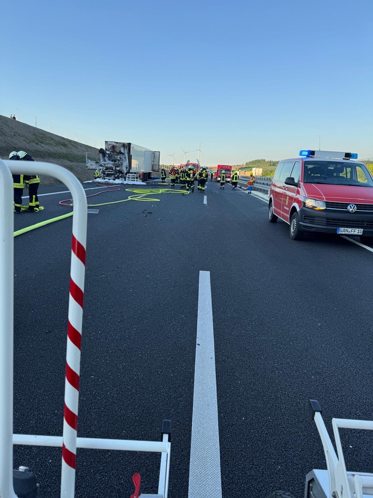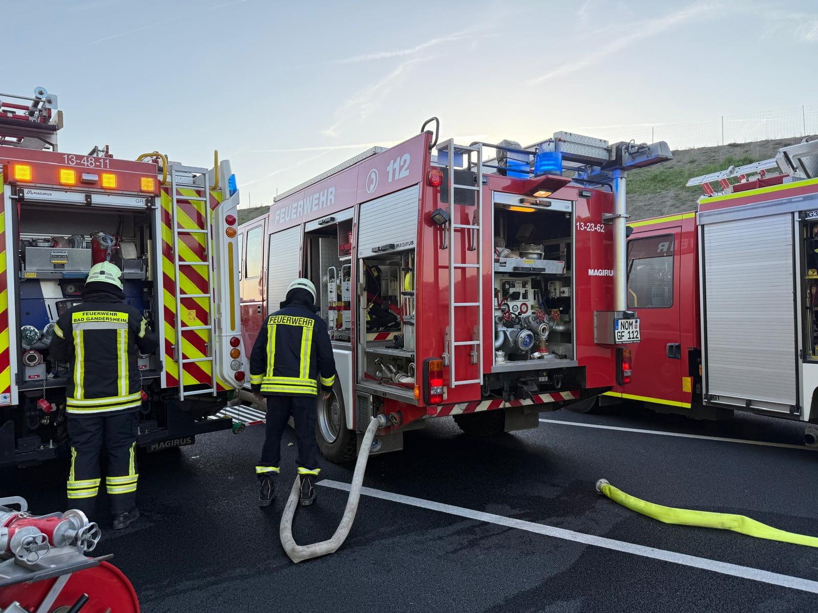 Zu einem gemeldeten LKW-Brand, wurden wir gemeinsam mit den Feuerwehren, Harzbörde, Echte, Kalefeld und Seesen alarmiert. Bereits auf der Anfahrt war eine starke Rauchentwicklung sichtbar. Beim Eintreffen der ersten Kräfte stand das Führerhaus bereits in Vollbrand und die Flammen griffen auf den Sattelauflieger über. Unter Atemschutz konnten die Einsatzkräfte den Brand eindämmen und im Anschluss mithilfe von Schaum ersticken. Für die Ortsfeuerwehr Bad Gandersheim war der Einsatz nach ca. anderthalb Stunden beendet. Die Autobahn 7 war bis in die Morgenstunden für Reinigungsarbeiten gesperrt.