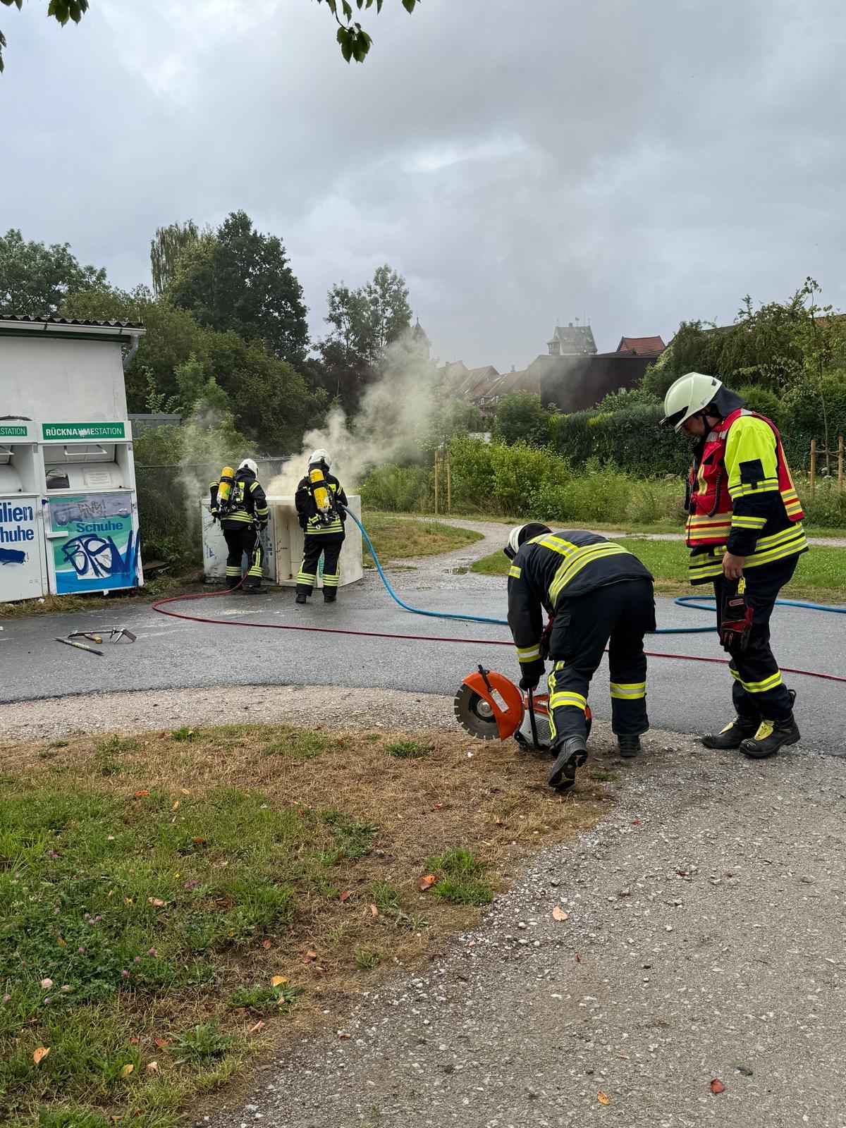 Zu einem brennenden Altkleidercontainer wurden wir am Sonntagmorgen gegen 07:23 Uhr alarmiert. Mit einem Trupp unter Atemschutz wurde der brennende Altkleidercontainer gelöscht. Um besser an die letzten Glutnester zu kommen, wurde der Container anschließend mithilfe eines Spreizers geöffnet. Nach ca. anderthalb Stunden war der Einsatz beendet.