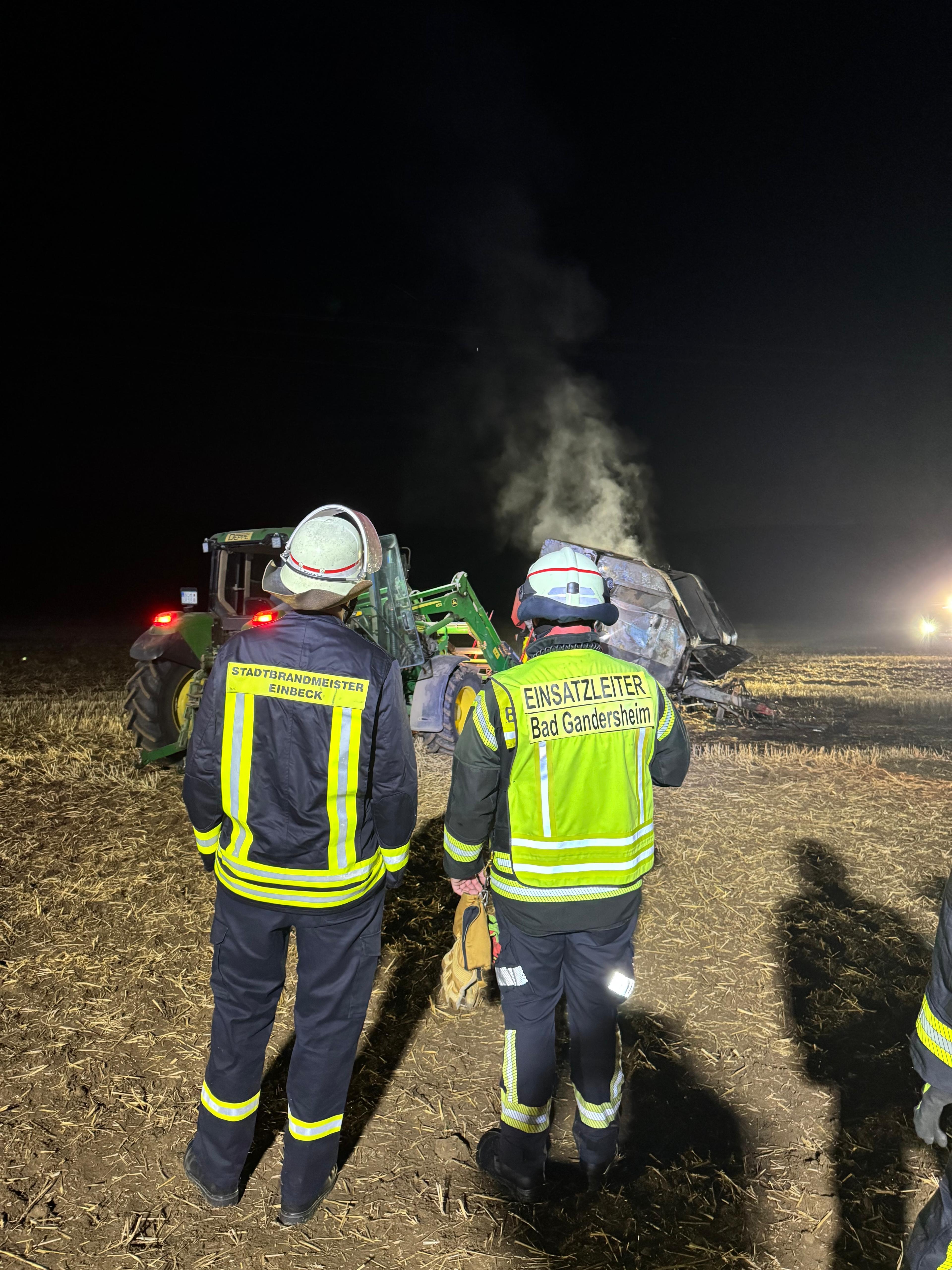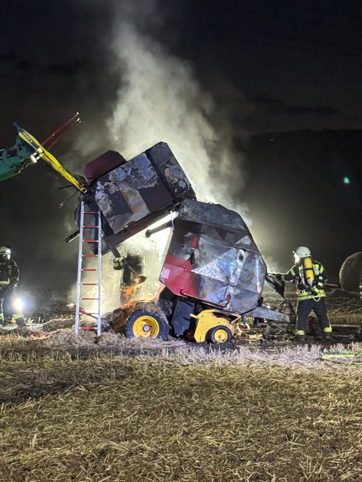 Am Sonntagabend gegen 21:14 Uhr wurden wir gemeinsam mit dem Löschzug 13 der Stadt Einbeck zu einem Brand einer Landmaschine auf die Kreisstraße 645 alarmiert. Beim Eintreffen der ersten Einsatzkräfte stand eine Ballenpresse bereits in Vollbrand.