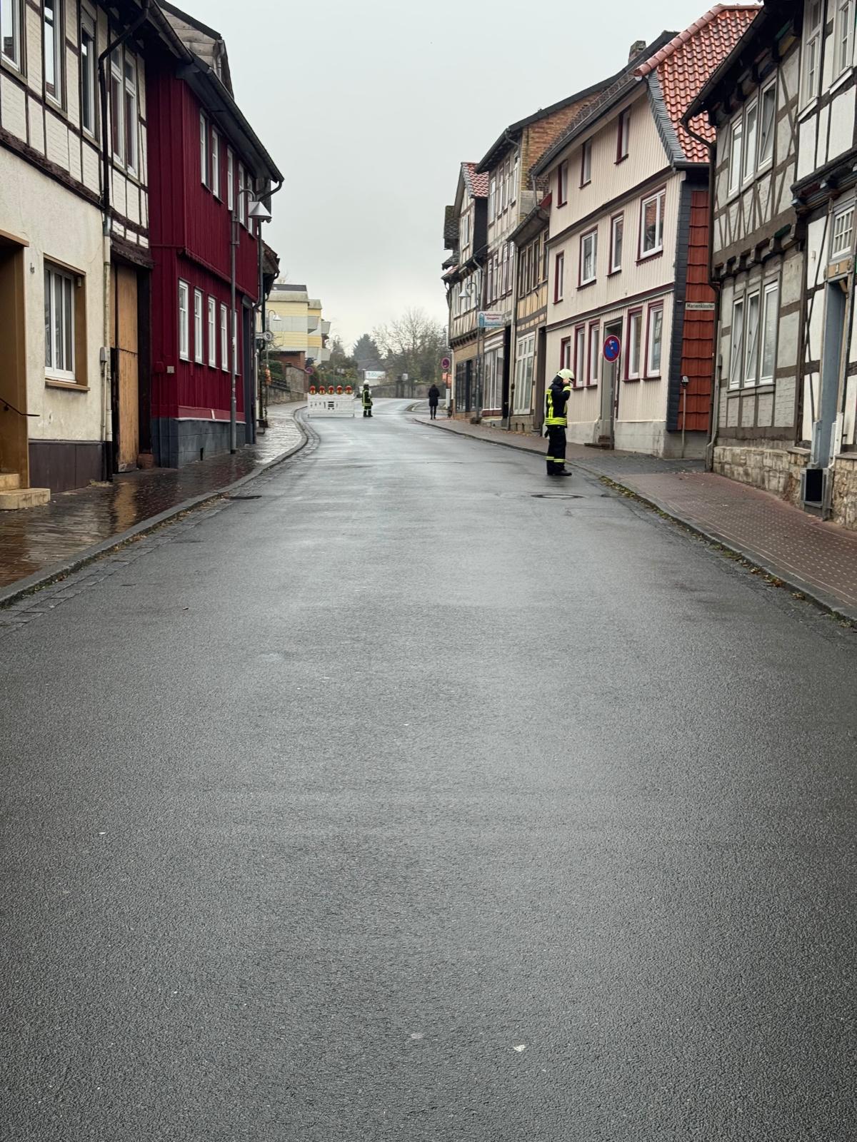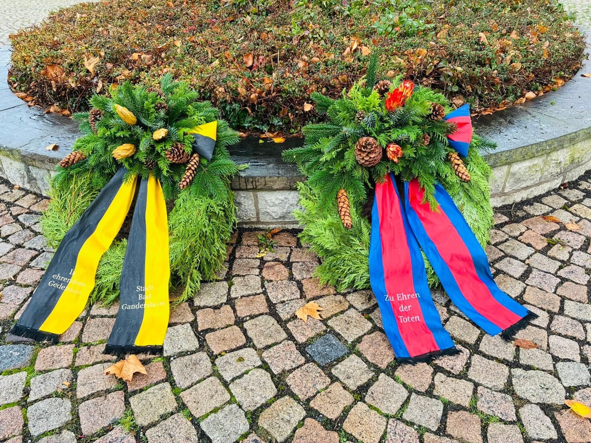 Am Sonntagmorgen sperrten wir die Straßen rund um das Kriegerdenkmal ab. Außerdem legten – als Vertreter der Schwerpunktfeuerwehr Bad Gandersheim – der Ortsbrandmeister sowie sein Stellvertreter einen Kranz nieder.