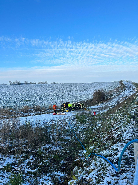 Die Schwerpunktfeuerwehr Bad Gandersheim wurde am 30.11.2023 um 13:34 Uhr auf die Bundesautobahn 7 Höhe des Parkplatz Schwalenberg, zu einem Verkehrsunfall mit einer eingeklemmten Person alarmiert. Kurz nach der Alarmierung, rückte die Schwerpunktfeuerwehr mit dem Rüstzug aus. Auf Anfahrt, zur Einsatstzstelle bekamen wir über Funk die Meldung, das drei Personen aus dem Fahrzeug bereits befreit sind und durch den Rettungsdienst versorgt werden. Die vierte Person war entgegen der Meldung nicht eingeklemmt, sondern eingeschlossen. Kurz nach dem Eintreffen und kurzer Abstimmung mit dem Rettungsdienst, entschied man sich, eine große Rettungsöffnung zumachen, aufgrund des Verletzungsmusters. Im weiteren Verlauf klemmten wir die Batterie und streuten auslaufende Betriebsstoffe ab. Die Ortsfeuerwehr Dannhausen übernahm während des Einsatzes die Verkehrssicherung. Neben der Schwerpunktfeuerwehr Bad Gandersheim, waren noch die Ortsfeuerwehr Dannhausen, der DRK Rettungsdienst aus Bad Gandersheim und Northeim, der Rettungshubschrauber Christoph 30 aus Wolfenbüttel sowie die Autobahnpolizei im Einsatz. Nach ca. dreieinhalb Stunden war der Einsatz für uns beendet.