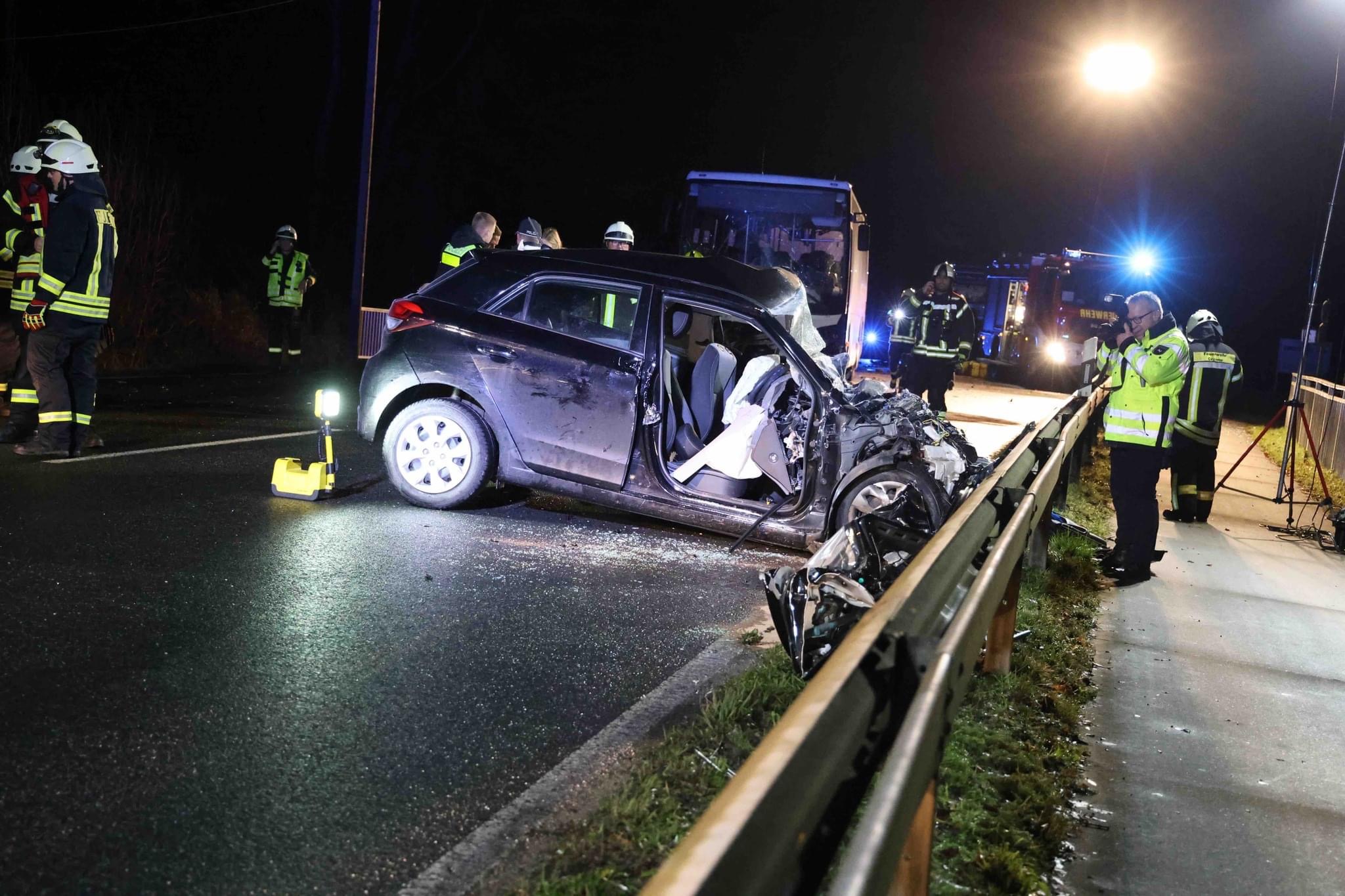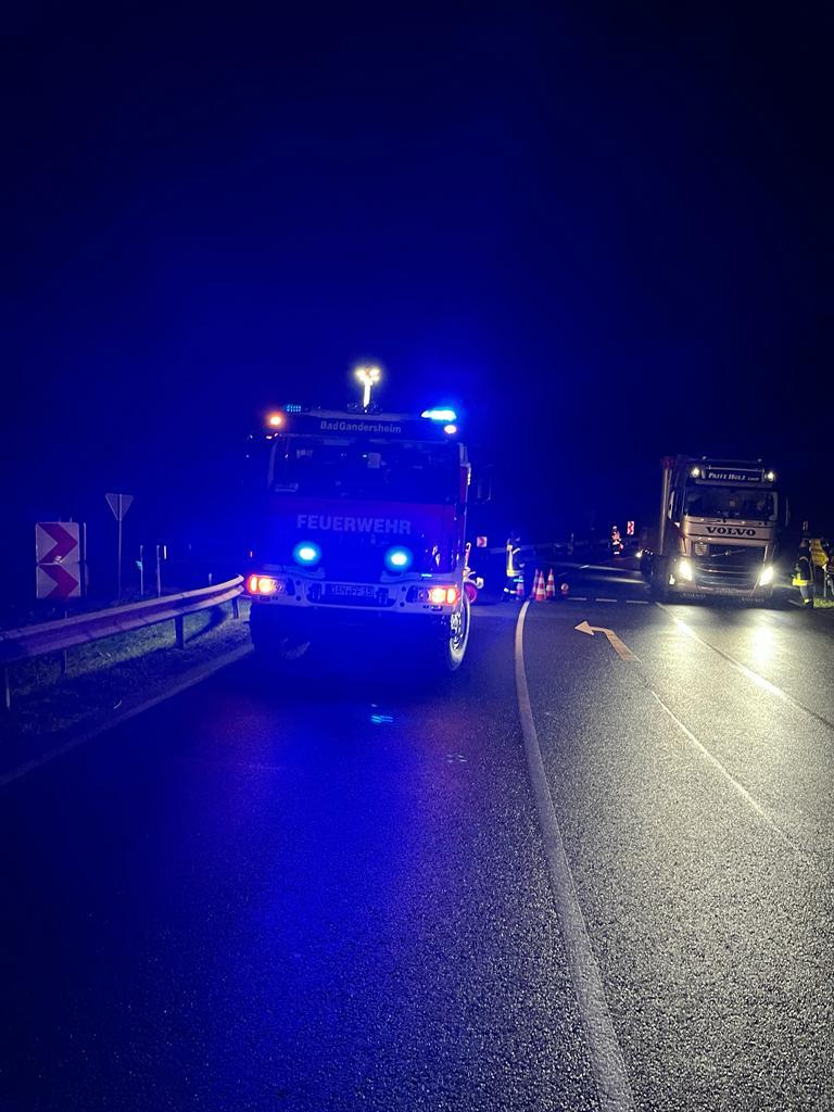 Die Schwerpunktfeuerwehr Bad Gandersheim wurde gemeinsam mit den Feuerwehren Greene und Kreiensen, dem Rettungsdienst und der Polizei zu einem Verkehrsunfall auf die B64 alarmiert. Vor Ort war ein PKW frontal mit einem Linienbus zusammengeprallt. Die Feuerwehren Kreiensen und Greene, befreiten den Fahrer des PKWs mit technischem Gerät. Die Feuerwehr Bad Gandersheim unterstütze dabei, leuchtete die Einsatzstelle aus und machte die Verkehrssicherung. Nach ca. zweieinhalb Stunden war der Einsatz für die Feuerwehr Bad Gandersheim beendet.