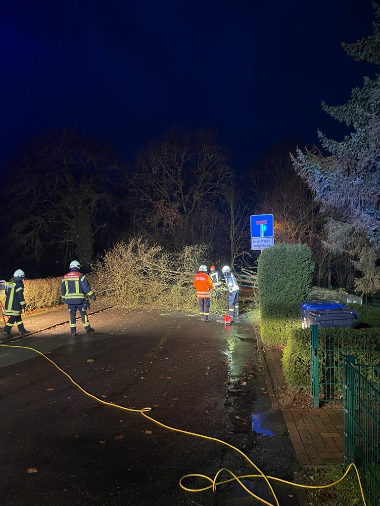Noch während der Rückfahrt von dem Einsatz in Hachenhausen, bekamen wir von der Leitstelle Northeim einen weiteren Einsatz über Funk. In der Königsberger Straße fiel ebenfalls ein Baum um und blockierte die Straße. Wir zersägten den Baum und säuberten anschließend die Straße.