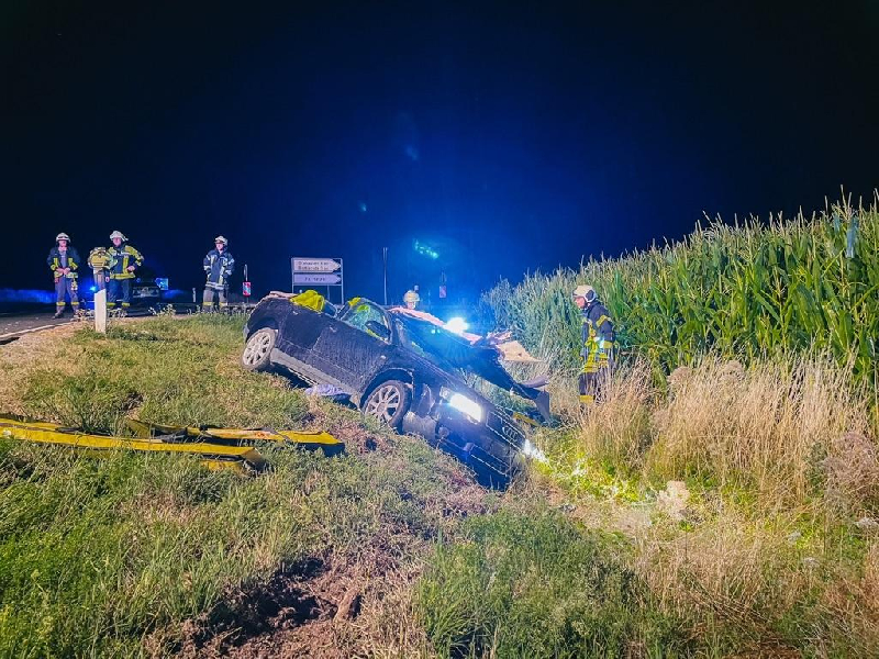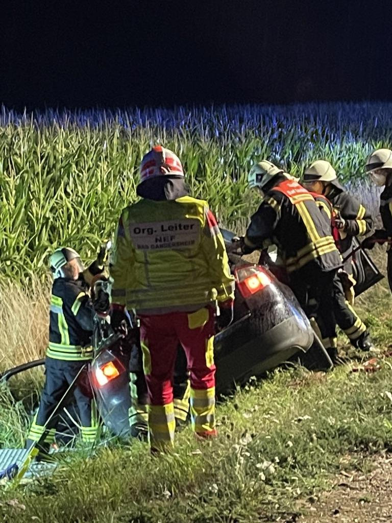 Im Einsatz waren insgesamt 40 Kräfte von Feuerwehr, Rettungsdienst und Polizei. Am Unfallauto entstand wirtschaftlicher Totalschaden, den die Polizei mit 6000 Euro angibt.