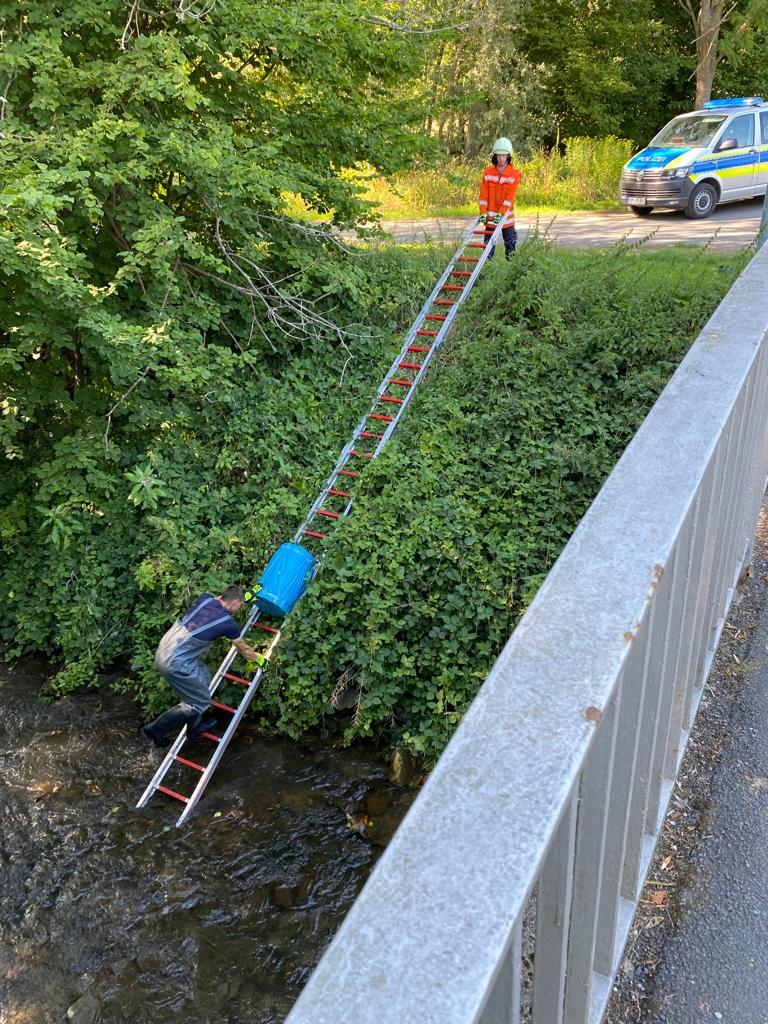 Am heutigen Montag wurden wir um 16:00 Uhr zu einer Technischen Hilfeleistung, in die Gandestraße alarmiert. Vor Ort galt es, für die Polizei eine Tonne aus der Gande zu bergen.