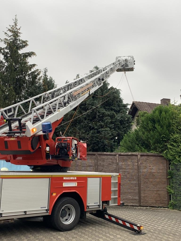 Um 18:24Uhr wurden wir zur Unterstützung des Rettungsdienstes in die Braunschweigerstraße alarmiert. Vor Ort galt es, mit der Drehleiter, der Schleifkorbtrage + Absturzsicherung die Person aus der Dachgeschosswohnung zu retten. Die Rettung der Person gestaltete sich schwieriger, da das Haus im hinteren Bereich der Straße lag. Nachdem die Person durch den Rettungsdienst behandelt wurde, begannen wir mit der Rettung. Während des Einsatzes wurde die Braunschweigerstraße durch den ELW und den MTW gesperrt.