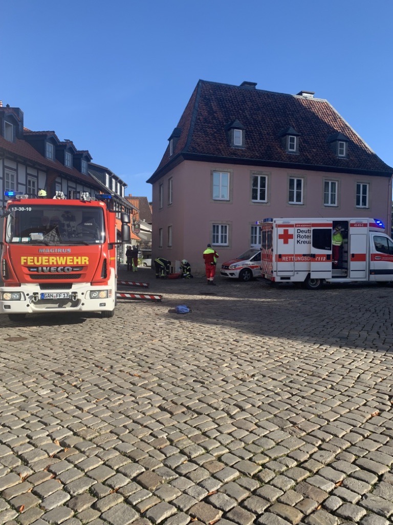 Heute Vormittag wurden wir um 10:14 Uhr zur Unterstützung des Rettungsdienstes auf den Markt alarmiert. Da, dass Treppenhaus zu eng war, alarmierte uns der Rettungsdienst zur Tragehilfe nach. Nachdem der Rettungsdienst die Patientin behandelt hatte, retteten wir diese, mittels Drehleiter und Schleifkorbtrage aus dem 1. OG. Nach gut einer Stunde war der Einsatz mit Nachbereitung für uns beendet.
