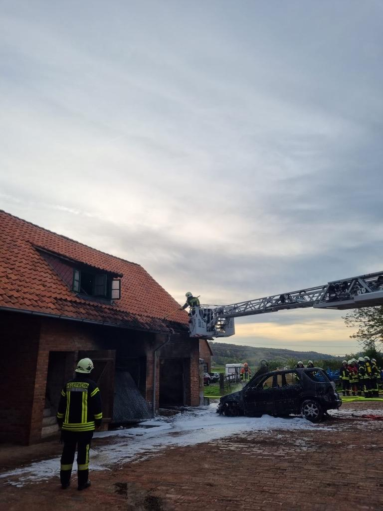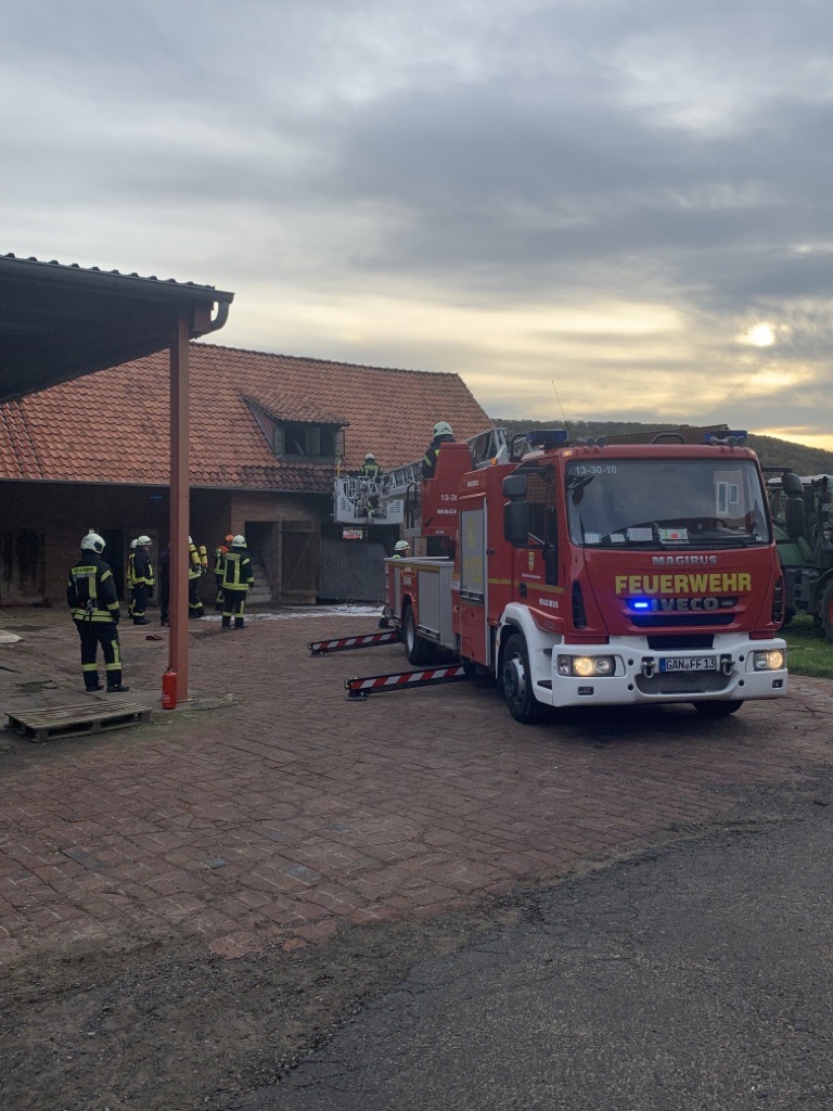 Heute Morgen wurden wir um 08:08 Uhr nach Erzhausen, zu einem Scheunenbrand alarmiert. Vor Ort brannte eine Garage, mit mehreren PKWs. Unsere Aufgabe bestand darin, mit der Drehleiter und einem Einreißhaken, die Dachhaut der Scheune zu öffnen. Des Weiteren kontrollierten wir, mittels Wärmebildkamera das Dach nach möglichen Glutnestern. Für uns war der Einsatz mit Nachbereitung nach ca 2 Stunden beendet.