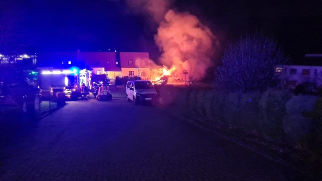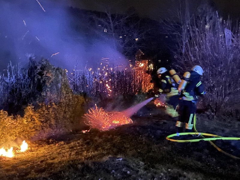Ganze drei Minuten war das neue Jahr alt und schon wurden wir zu einem Heckenbrand in den Kastanienweg alarmiert. Beim Eintreffen der ersten Einsatzkräfte stand die Hecke bereits in Vollbrand. Ein Trupp unter Atemschutz und mit einem C-Rohr löschte den Brand und kontrollierte anschließend die Umgebung mit der Wärmebildkamera. Nach ca. einer Stunde konnten wir wieder einrücken.