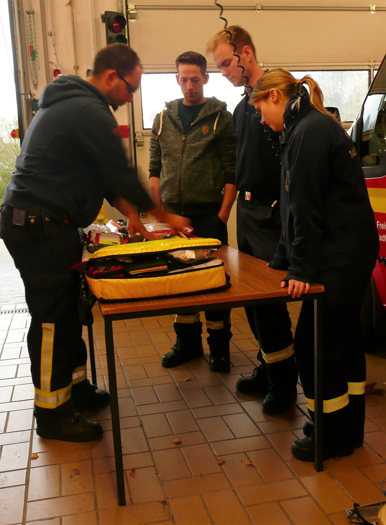 An 4 Wochenenden bekamen die Teilnehmer in über 60 Unterrichtseinheiten den Umgang mit medizinischen Notfällen gelehrt. Zu den Ausbildungsinhalten gehörten u.a. die Grundlagen der menschlichen Anatomie, klinische Untersuchung und Diagnostik wie Blutdruck- und Blutzuckermessung, Pulsoxymetrie und EKG, das Erkennen lebensbedrohlicher Zustände und Maßnahmen zur Versorgung von Erkrankten und Verletzten wie Reanimation, Nutzung eines Laiendefibrillators, Atemwegsmanagement, Wundversorgung und Traumamanegement sowie Maßnahmen zur Unterstützung des Rettungsdienstes. Neben der theoretischen Ausbildung übten die Kursteilnehmer den Umgang mit dem notfallmedizinischen Equipment und trainierten die erlernten notfallmedizinischen Basismaßnahmen in zahlreichen Fallbeispielen. Der Lehrgang endete für die Teilnehmer mit einer schriftlichen und praktischen Prüfung.