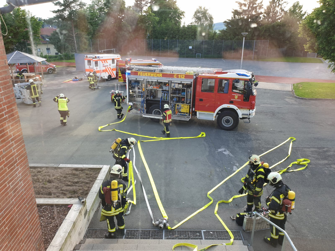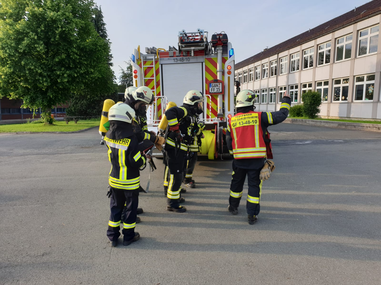 Ein besonderer Dank gilt dem Roswitha Gymnasium die das Übungsobjekt zur Verfügung gestellt haben. So konnte die Feuerwehr Bad Gandersheim unter realistischen Bedingungen üben und das Einsatzszenario abarbeiten.