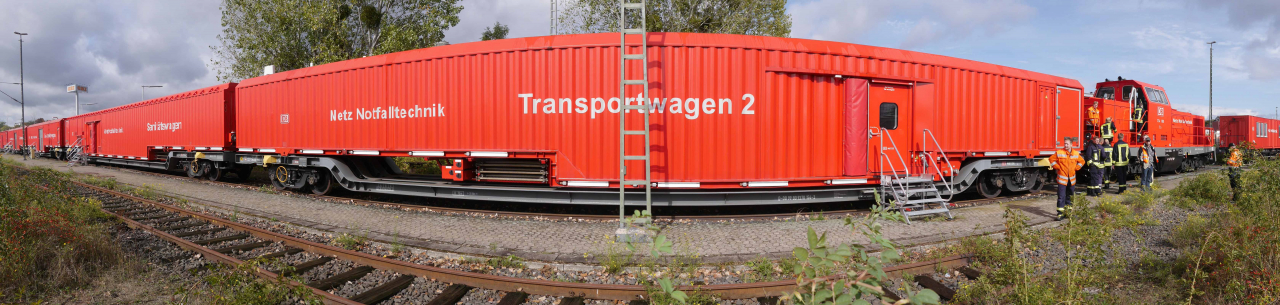 Um 7:00 Uhr trafen sich 12 Kameraden/innen am Feuerwehrgerätehaus Bad Gandersheim und machten sich nach einer Begrüßung und Einweisung auf den Weg nach Hildesheim, wo einer von deutschlandweit 6 Tunnelrettungszügen der Deutschen Bahn AG stationiert ist. Hier angekommen wurden sie von 2 Ausbildern der DB AG begrüßt und es wurden gleich einige Informationen ausgetauscht. So konnte man erfahren, dass der Zug eigentlich aus zwei Teilen besteht. Einem sogenannten Stammteil und einem Pendelteil. Während das Stammteil bei Einsätzen in den jeweiligen Tunnel einfährt und dort bleibt, pendelt das Pendelteil zwischen Tunnel und Rettungsplatz um Verletzte und Einsatzmaterial über teilweise mehrere Kilometer Entfernung zu transportieren. Aufgabe der Portalfeuerwehren ist es unter anderem die Stammbesatzung des Zuges, 20 Feuerwehrkräfte, 13 Rettungsdienstkräfte sowie 4 Notärzte, die schon mit dem Zug „anreisen“, bei der Arbeit an der Einsatzstelle zu unterstützen. Weiterhin müssen aber auch am Rettungsplatz Rampen aufgebaut werden, um die Verletzten aus dem Pendelteil herauszubringen und in bereitstehende Rettungswagen umzulagern. Dieses konnte vor Ort unter fachkundiger Anleitung der Ausbilder ausgiebig geübt werden. Die zweite Gruppe beschäftigte sich mittlerweile mit der Funkverbindung innerhalb des Zuges und wie eine sichere Funkverbindung nach außen zu den Feuerwehren bzw. der Einsatzleitung hergestellt werden kann. Auch hier müssen die Portalfeuerwehren mit Stromerzeugern unterstützend tätig werden. Zum Abschluss des Besuchs wurden noch die Geräte- und Sanitätswagen des Zuges besichtigt und erklärt. Im Gerätewagen wird Material zur Bekämpfung von Bränden (inklusive 20.000 L Wasser) und zur Rettung von eingeschlossenen Personen zur Einsatzstelle transportiert. Im Sanitätswagen können die 4 Notärzte und 13 Rettungsdienstmitarbeiter bis zu 13 Personen notfallmedizinisch behandeln, bevor sie dann in das Pendelteil des Zuges umgeladen und aus dem Tunnel gebracht werden können. Nach dieser Ausbildungseinheit und dem Dank an die Ausbilder stand für die Gruppe ein gemeinsamer Mittagsimbiss auf dem Plan, bevor es dann wieder Richtung Bad Gandersheim ging. Hier erfolgte der zweite Teil des Workshops, nämlich die Besichtigung der Rettungsplätze im eigenen Einsatzbereich. Etwas genauer wurde sich das Südportal des über 1.600m langen Hellebergtunnels angesehen. Erläutert wurde der Haltepunkt des Rettungszuges, mögliche Zugangswege für die Feuerwehrkräfte und sowie die eventuelle Fahrzeugaufstellung auf dem Rettungsplatz. Bei der Nachbesprechung im Feuerwehrgerätehaus an der Heckenbecker Straße war man sich einig, dass dieser erstmalig durchgeführte Workshop in regelmäßigen Abständen wiederholt werden muss um auf etwaige Einsätze gut vorbereitet zu sein. Der Dank der Feuerwehr Bad Gandersheim geht nochmals an die beiden Ausbilder der Deutschen Bahn, die sich den Samstag Zeit genommen haben und den Rettungszug sowie seine Aufgaben und Möglichkeiten lebhaft präsentieren konnten.