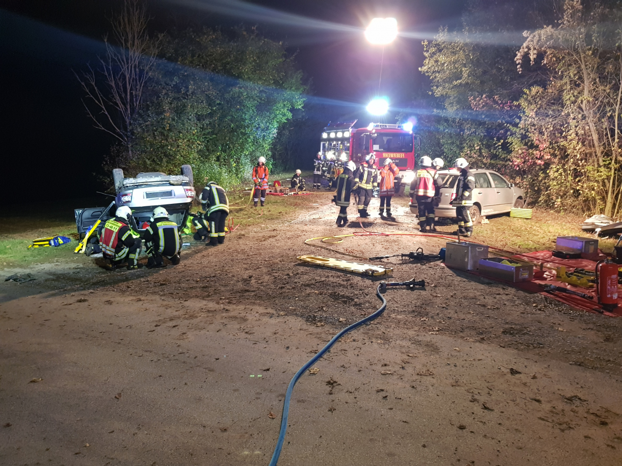 gegen Umstürzen und Wegrutschen gesichert werden. Weiter wurde ein Zugang zu den verletzten Personen für die Besatzung des Zug-RTW, der Schwerpunktfeuerwehr Bad Gandersheim, geschaffen. Die Kameradinnen und Kameraden sollten unter realistischen Bedingungen, zeitoptimiert eine schnelle Rettung vornehmen. Zu dieser Art der Rettung von Verletzten standen weiterhin der Umgang mit den hydraulischen Rettungsgeräten, der Absicherung von Einsatzstellen und die Kommunikation an der Einsatzstelle mit dem Einsatzleitwagen im Vordergrund der Aufgaben. Des Weiteren wurde eine umfangreiche Einsatzdokumentation von der ELW-Gruppe geführt. Die eingesetzten Gruppenführer haben die vorgefundene Lage zur vollsten Zufriedenheit des Zugführers abgearbeitet.