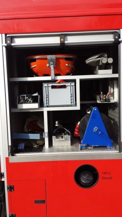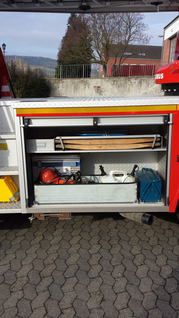 In dieser Ansicht sind die Gerätschaften von den Gerätefächern vorne, mitte und hinten