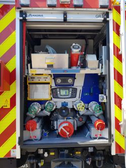 Hilfeleistungslöschgruppenfahrzeug  Pumpenansicht